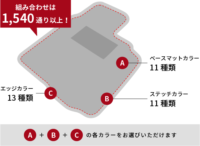 縁とステッチを選んでカスタマイズ!自分だけのフロアマットへ。